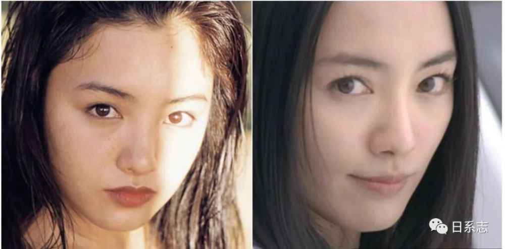 细长眉加细长眼型的深田恭子,即便以前也胖胖的,但还是很有老相。加上鼻头扁、鼻翼宽,跟女神还是有些距离的。▼