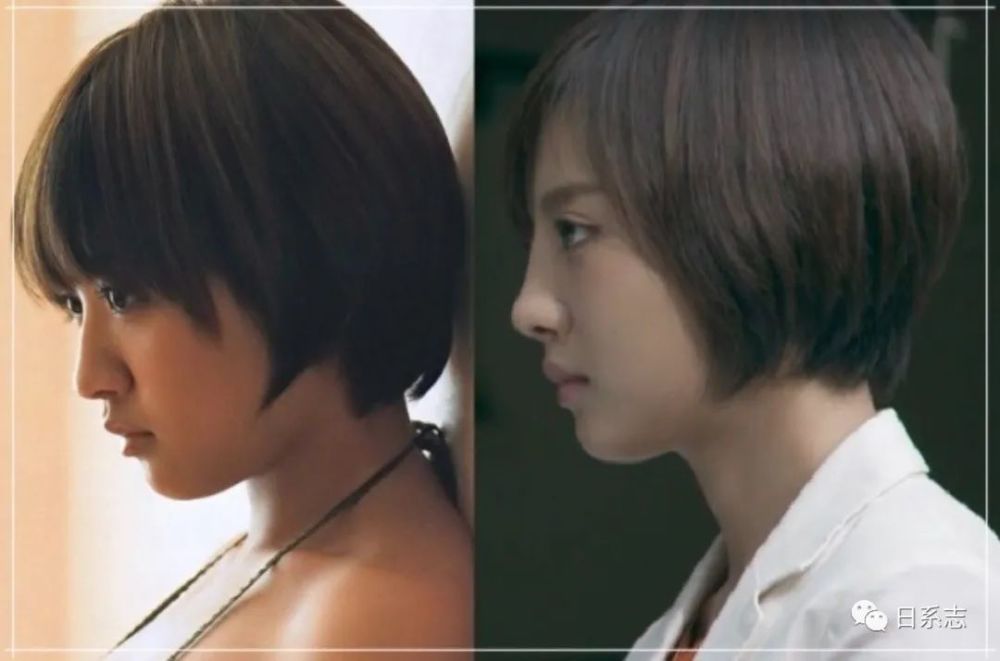 绫濑遥除了眼睛从单眼皮变成内双之外,鼻梁也变高了,所以同样的笑容才看得到鼻孔了。▼