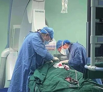 体验当天,邵一兵(左)团队为患者植入起搏器