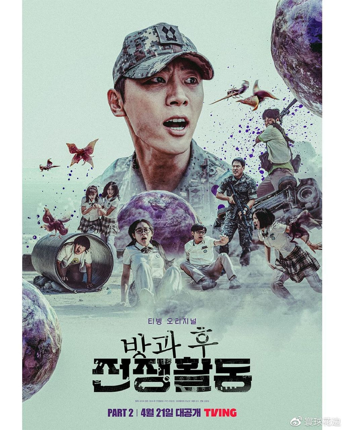 《放学后战争活动》改编自漫画家河一权的同名网络漫画,剧情讲述天空中布满了奇怪的球体,球体坠落地面后,就会出现不明生物攻击人类。为了对抗笼罩整个天空的奇怪生命体,高三学生们接受军事训练,被编制成军人预备军,任务就是消灭球体。《放学后战争活动》启用大批新人演员,却还是因为紧凑刺激的剧情造成话题,学生们不但要抵御球体的攻击,还要面临同伴的死亡、互相的信任崩塌等问题,与去年爆红的《僵尸校园》是同一类型的剧。本来应该上考场的学生却拿着枪上战场,令人唏嘘,也让观众因为好奇学生们的结局而不知不觉一口气看完!