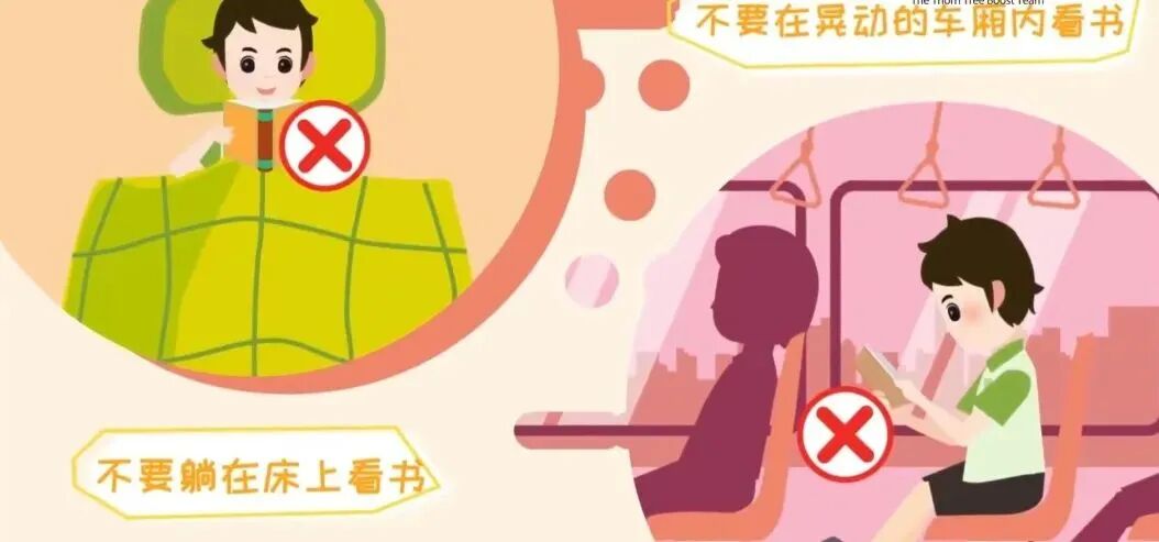 研究表明,在儿童青少年视觉发育期,高强度近距离用眼是造成整体人群中近视高发的最主要影响因素。用眼距离越近,时间越长,眼的负荷就越重,对眼睛的伤害也越大。如果长时间处于这种调节紧张状态,我们的眼部肌肉就会发生痉挛现象,诱发近视产生。在看书学习时要注意适时休息,中小学生持续近距离用眼时间最长不超过40分钟,年龄越小的孩子,持续用眼时间建议越短。
