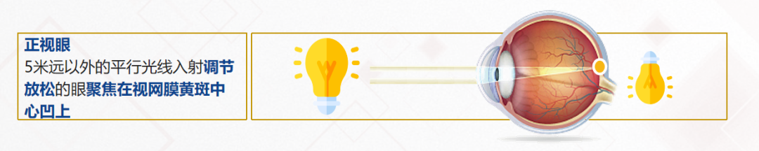 正视眼是指5米远以外的平行光线入射调节放松的眼球,通过眼球光学系统清晰成像在视网膜黄斑中心凹上,正常的眼光学系统取决于眼球的屈光力和眼轴长度等参数的匹配。