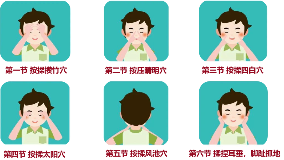 传统穴位眼保健操是根据中医的推拿、穴位按摩,结合体育医疗综合而成的一种按摩疗法。可以通过按摩眼部周围的穴位和皮肤肌肉,达到刺激神经,促进眼部血液循环,松弛眼部肌肉,缓解眼睛疲劳的目的。做操时,注意清洁双手,找准穴位,力度到位,以感觉到酸胀感为宜。临床研究表明,做眼保健操相比不做眼保健操可以减少调节迟滞,改善主观视疲劳感受,有助于控制近视。