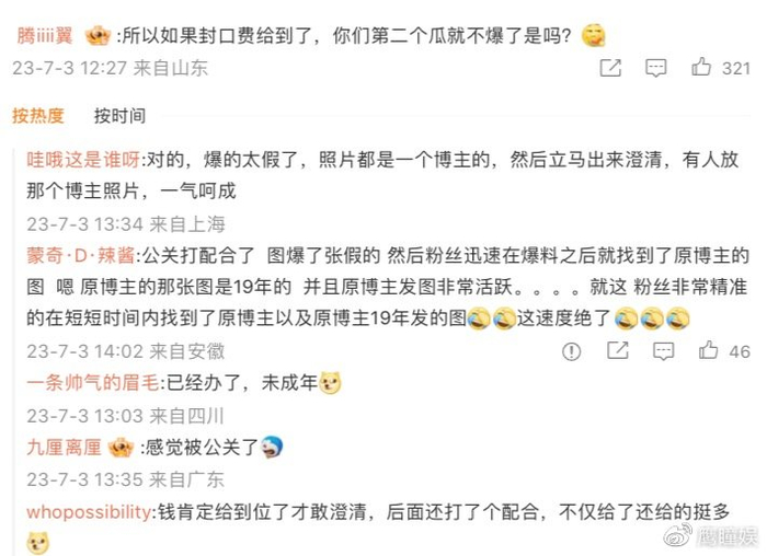 由此可见,网友们还真的对蔡徐坤这么久憋出来的声明嗤之以鼻,更有网友直言,这么久才出来回应,应该是花钱公关了那位爆料者以及某些知情人士,所以才会时隔这么久,发出了这条避重就轻的声明。因为他们知道,已经公关了,所以不管他再说什么,都不会再有人出来踢爆他了。