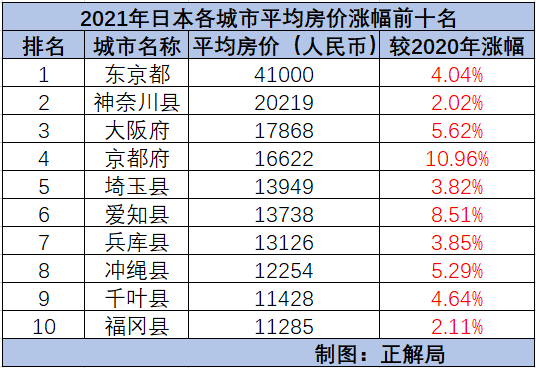 到了2021年,涨幅最好的日本东京都市圈,新房价格更是创下了近31年以来的新高。