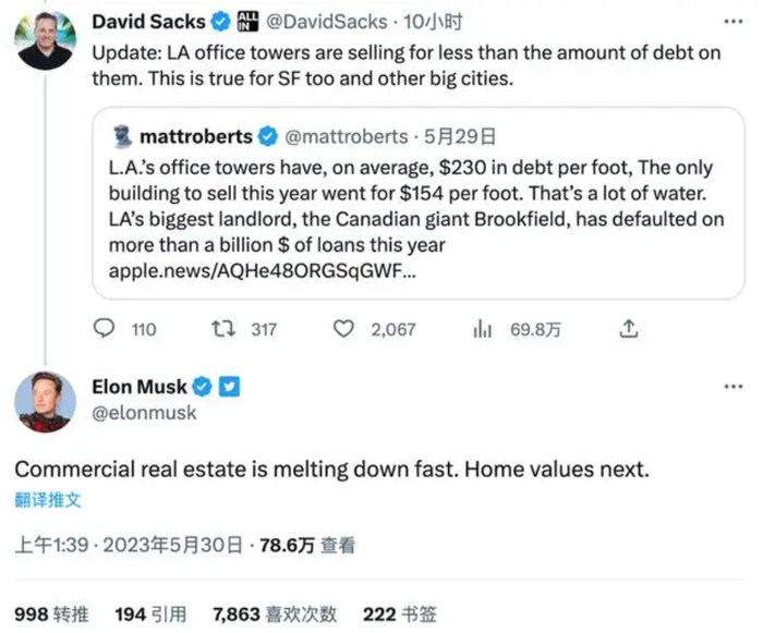 到了5月,他再一次警告:“(美国)商业地产正迅速崩溃,接下来是房价。”