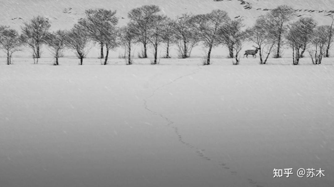 下起雪来白茫茫一片的林地,炊烟袅袅升起的村屋,鸟儿振翅飞过原野,鹿与牛缓步迁徙横越……安静的天地,天地是最好的布景,万物就在这布景中不期而遇。