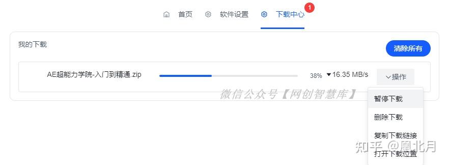 在下载中心中,能够看到文献的下载数目、下载进度,以及下载速率,操纵选项中,有停息下载、复制下载链交,关上下载地位几个选项。