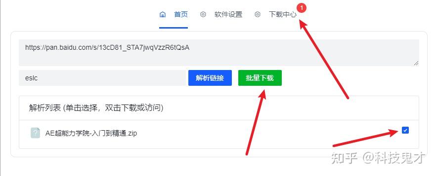 现在在首页选项这里,输出须要下载的网盘链交和暗码,然后点打剖析链交按钮,滚动考证拼图,选中剖析没来的文献,点打批量下载就能够了。