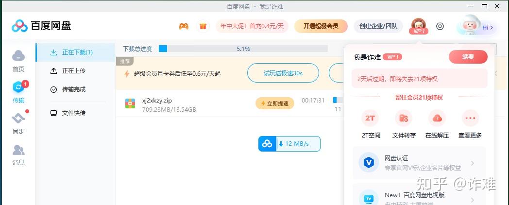 普通用户要想白嫖下载或者上传,只能被那几十K/s的速度逼的做个肝帝,彻夜开着电脑在那,若是急着想用的话,只能无奈开会员。