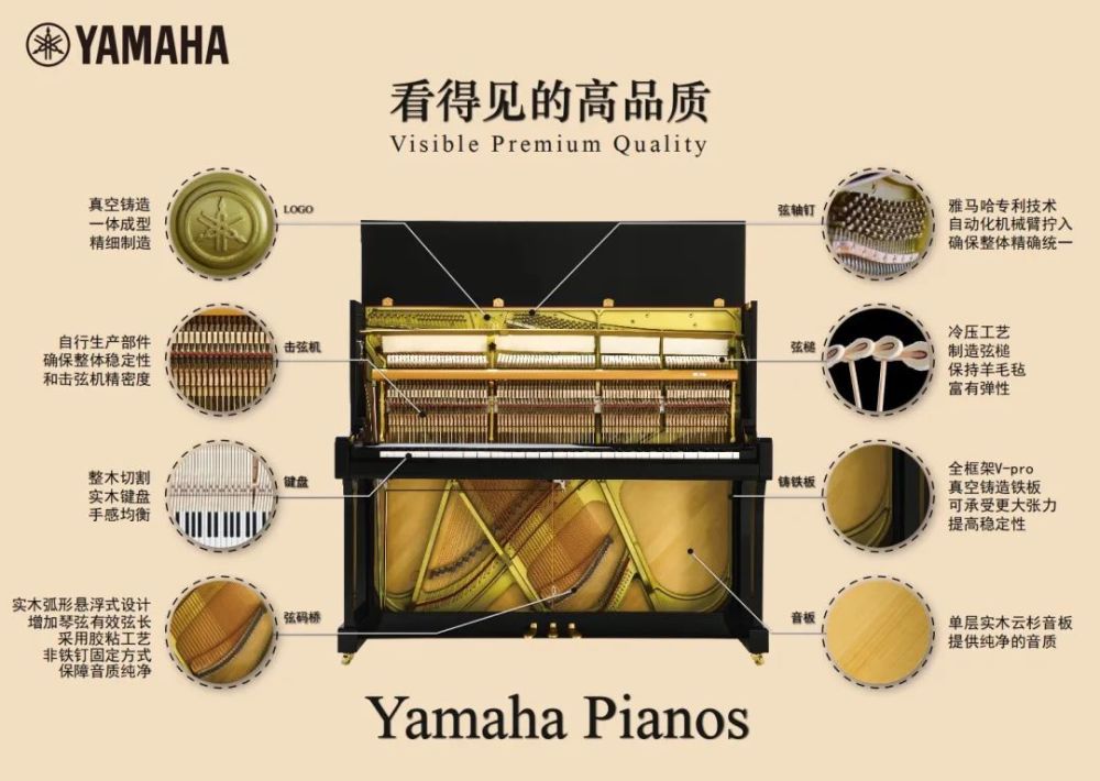 雅马哈立式钢琴拥有丰富的样式,能够满足所有弹奏者的需求。无论是家庭练习用琴,还是专业院校的教育用琴,都深受广大用户的喜爱。雅马哈立式钢琴特有的全框架型铸铁板为消费者带来了更为稳定的产品,在世界范围广受认可。
