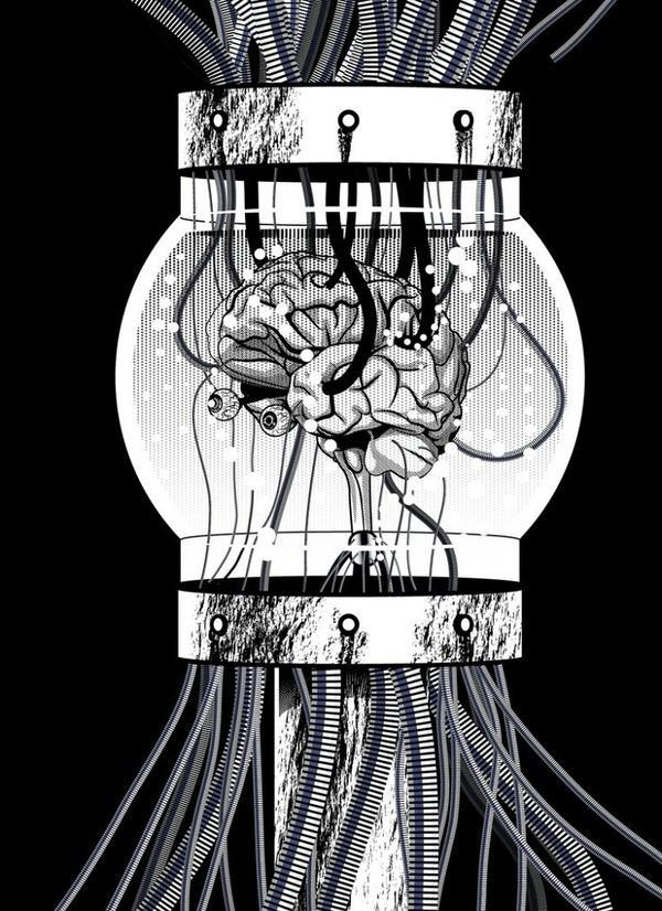 对于被摘掉的脑子来说,人、物体和天空仍然存在,也有着正常的身体与运动的感觉,甚至脑中的记忆还可以被更改被截取(例如删除掉进行大脑手术的记忆),甚至他做的一切事情、从出生到死亡都不过是一串代码的输入。