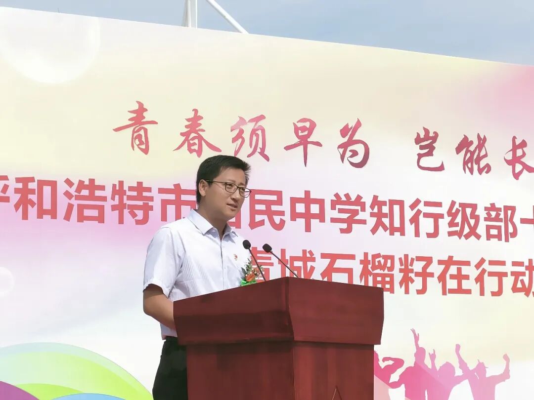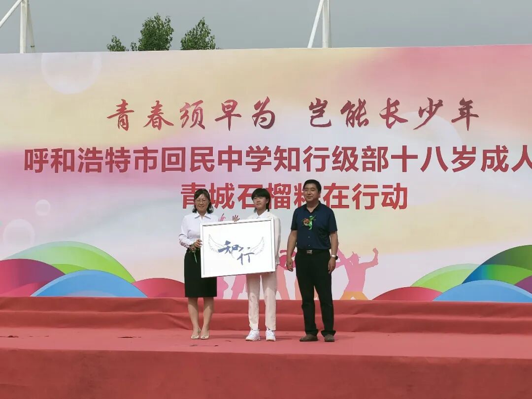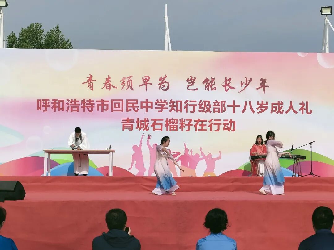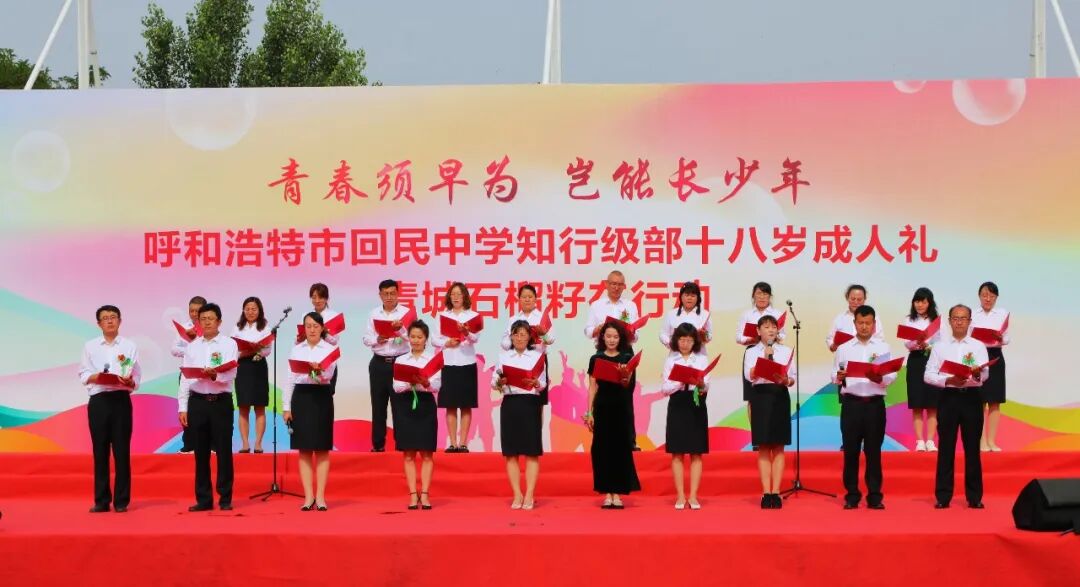 呼和浩特市教育局教育团工委副书记巴特尔,学校法制副校长、呼和浩特市人民检察院检委会委员第九检察部主任王君,呼和浩特市回民中学副校长马玲俊,呼和浩特市回民中学副校长弓慧扬以及学校各处室负责人、知行级部全体教师、家长代表参加了成人礼活动。