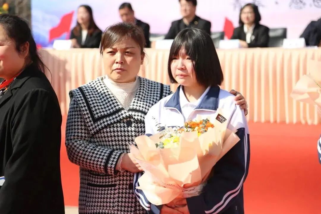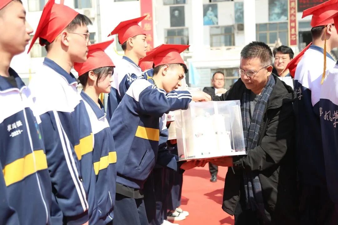 高二家长代表在讲话中号召全体高二学子要不断努力,保持身体和心理健康,教师和家长永远是他们最坚定的后盾。同时鼓励高二学子用奋斗书写青春,铿锵有力的发言引起了全体高二学子的共鸣。