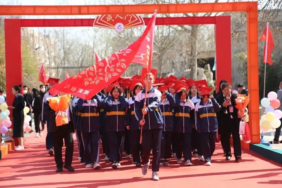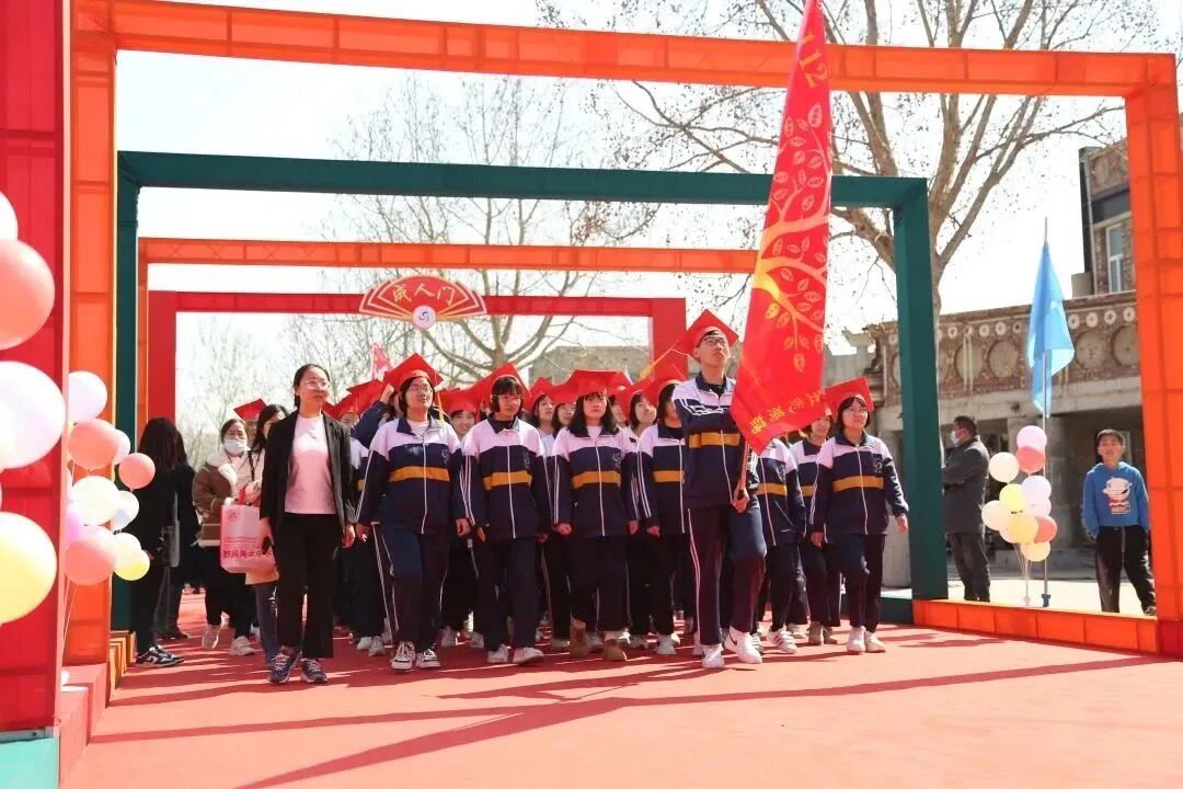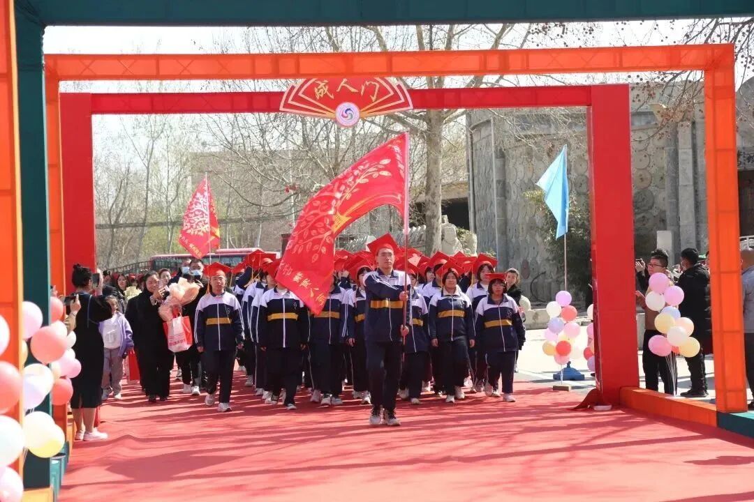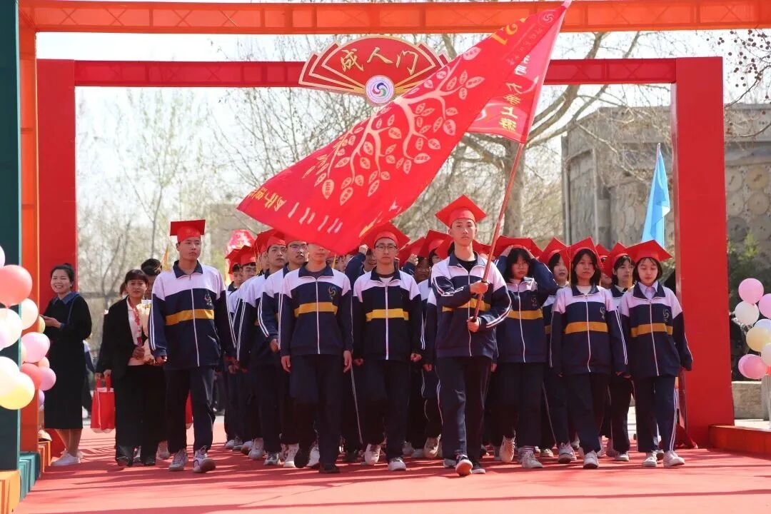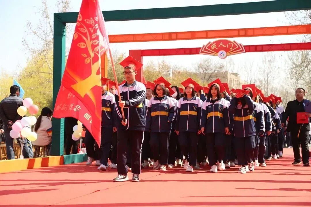 在家长和老师的陪伴下,全体高二学子依次走过成人门,18米的红地毯象征着这18年来自己的努力和父母老师的陪伴的印记。这代表着同学们褪去稚嫩的束缚,摒弃冲动和任性,学会付出和担当,承担责任和义务,面向未来,展翅高飞!