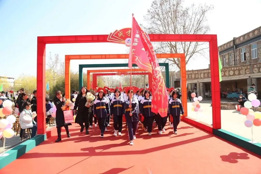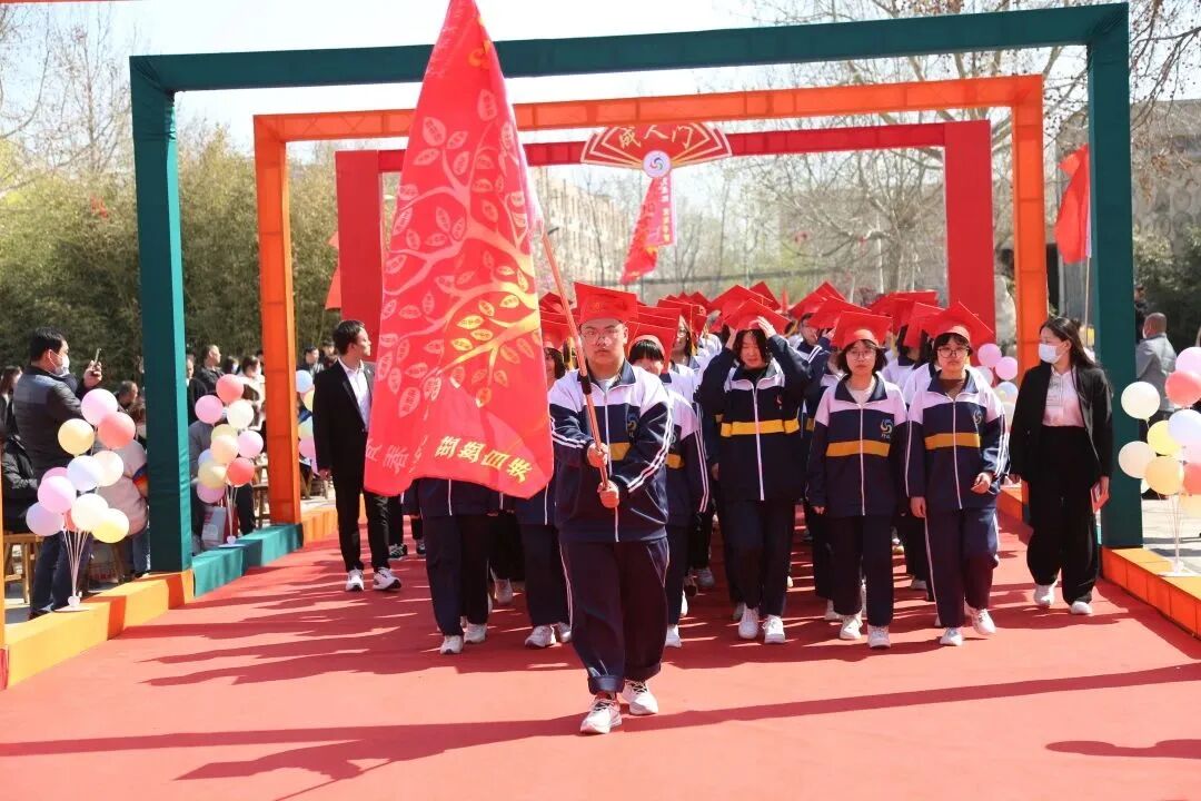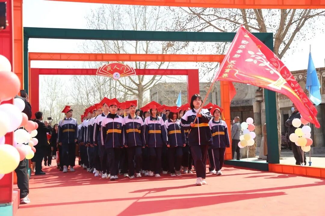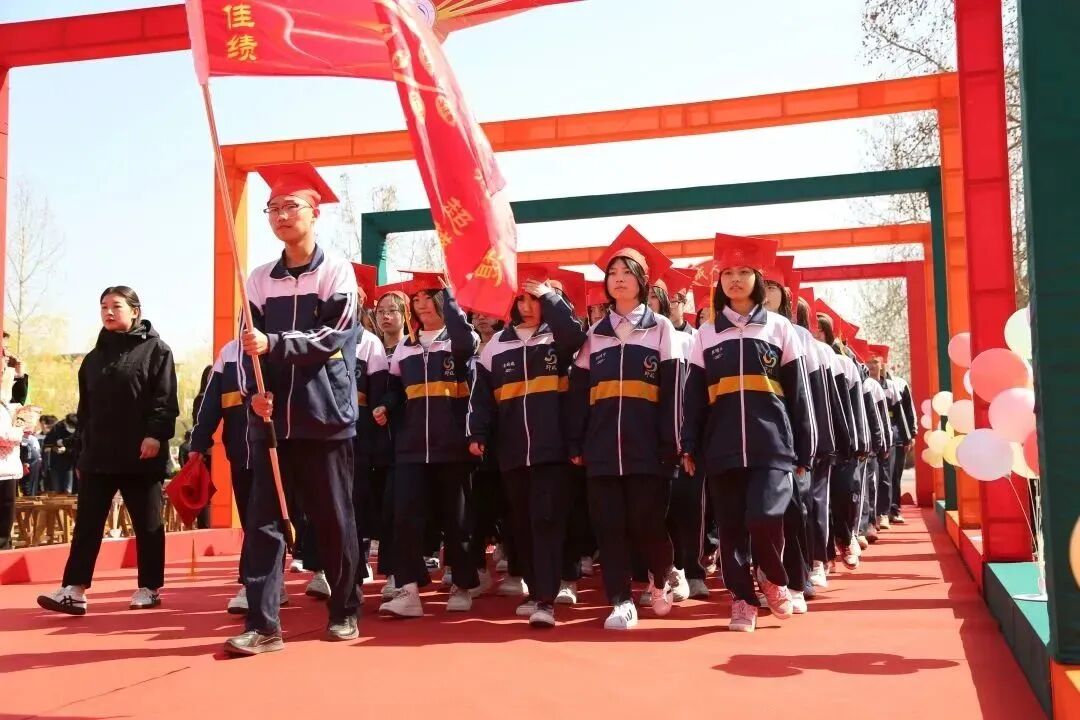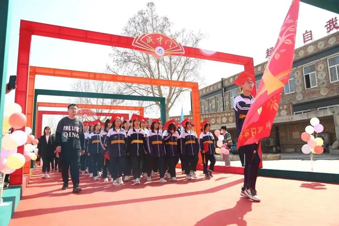 在家长和老师的陪伴下,全体高二学子依次走过成人门,18米的红地毯象征着这18年来自己的努力和父母老师的陪伴的印记。这代表着同学们褪去稚嫩的束缚,摒弃冲动和任性,学会付出和担当,承担责任和义务,面向未来,展翅高飞!