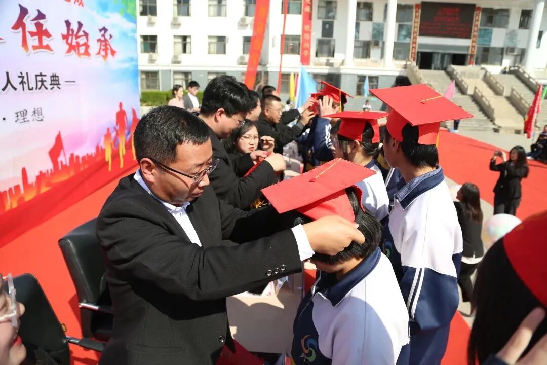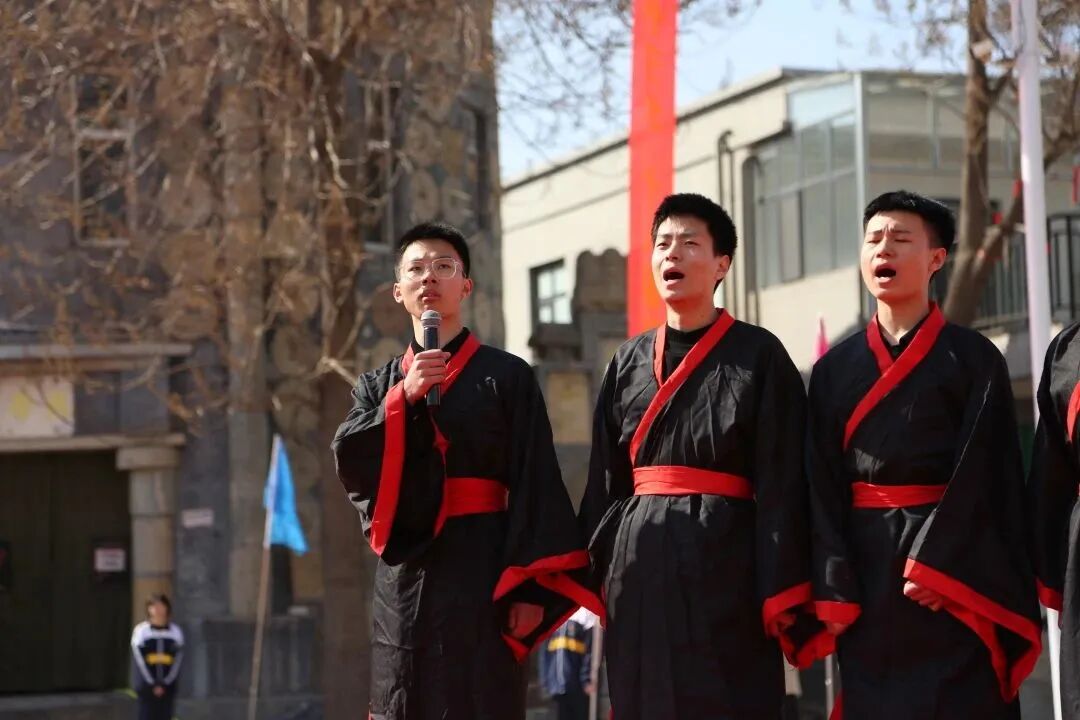 十八有责,厚德敏行,十八而冠,成人礼成。成人礼加冠仪式的举行意味着同学们正式从少年跨入青年,成为了法律意义上的全责公民,将全面享受和履行公民的权利和义务。在神圣的宪法和庄严的国旗见证下,高二年级全体师生,以中华人民共和国公民的身份庄严宣誓:必将捍卫神圣宪法,维护法治公平;继承先辈遗志,无愧祖国培养;承担社会道义,建设伟大祖国。