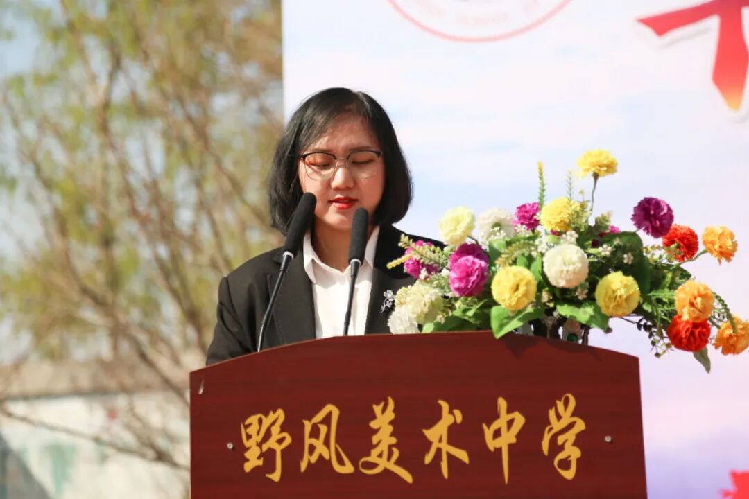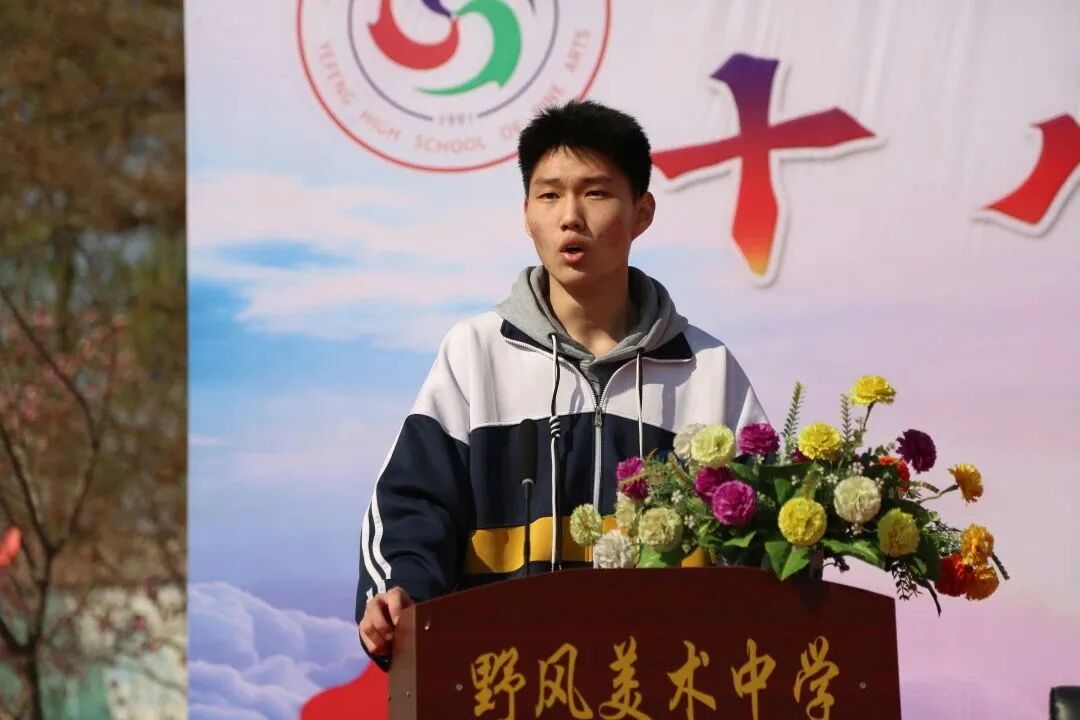 野风美术中学理事长冯竹溪致辞,勉励同学们成为一个率真的人、自律的人、有为的人。冯理事长说,首先要在高考中脱颖而出,还需要把个人的价值和国家、民族的需要结合起来,为国家、为民族,甚至为整个人类谋福祉。“让青春在全面建设社会主义现代化国家的火热实践中绽放绚丽之花!”
