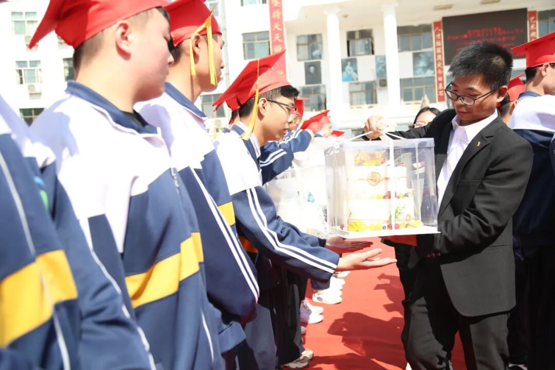 学校专门为高二学子准备了十八岁成人礼生日蛋糕,在祝福同学们“生日快乐,成人快乐”寓意之中,又包含了“步步登高”的美好祝愿,希望同学们在今后的学习生活中都能“步步登高”。
