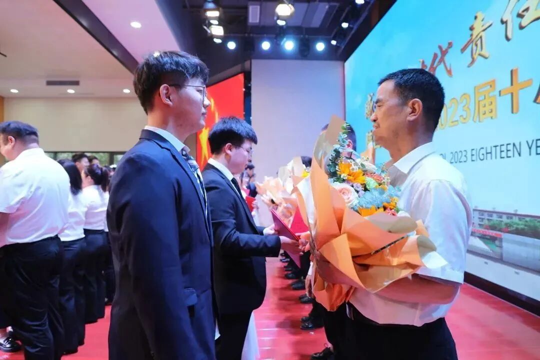 学生代表为我们的老师送上鲜花,感谢师长,三年来,陪伴我们逐梦筑梦。