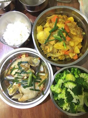 午餐清蒸和水煮食物为主,饭前先喝汤,增加饱腹感。一份主食:柚子大小的一份粗粮面包、馒头或面条等;两份蔬菜:以绿色蔬菜为主,像西兰花,青菜之类;一份肉类:大多选择鱼类、虾肉和鸡肉。