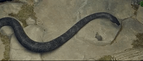 蟒蛇血盆大口吃下老鼠,这是蛇出自掠夺者的本能。
