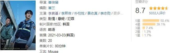 这部剧又名《Mouse》,是韩国tvN电视台出品的,主打悬疑犯罪的新韩剧。