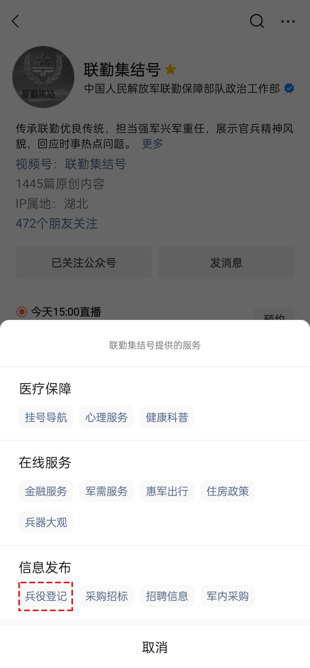 关注“联勤集结号”微信公众号 识别二维码,进入全国征兵网报名 ↓