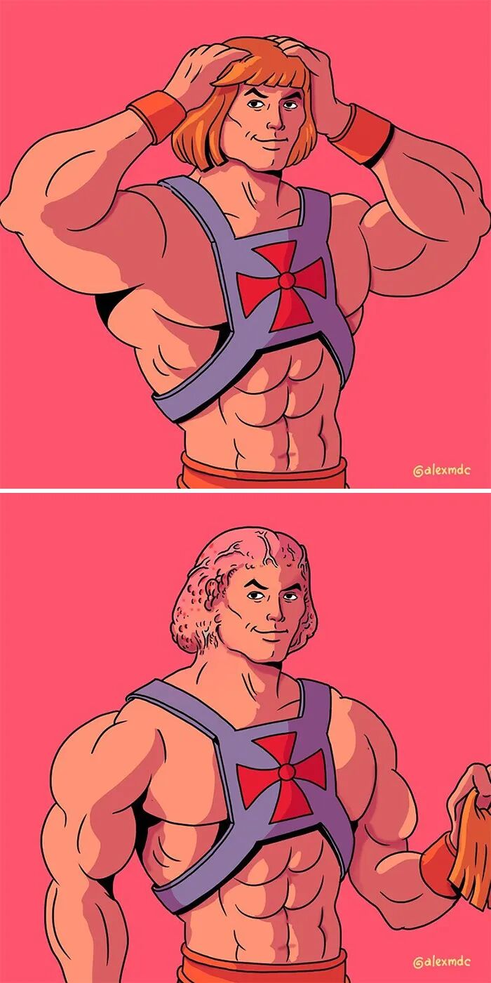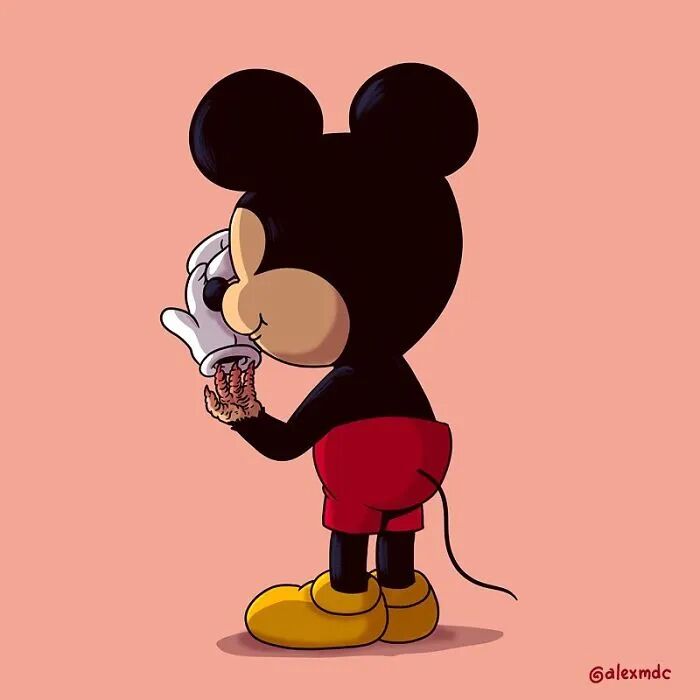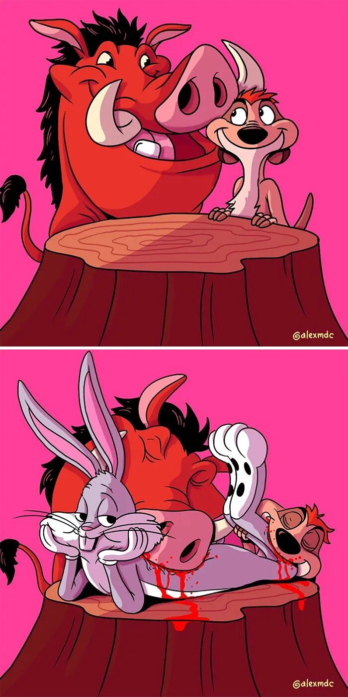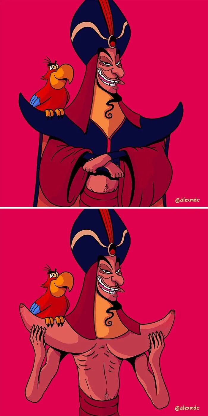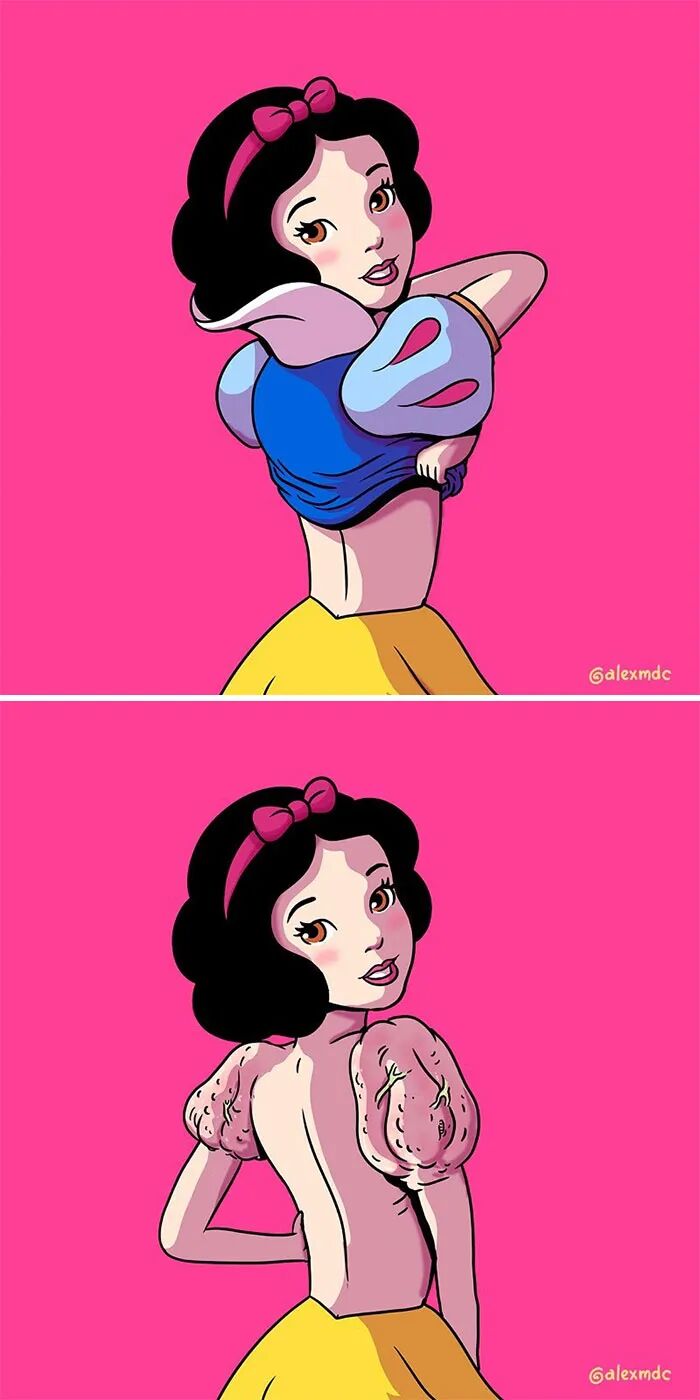 艺术家展示了受欢迎角色“看不见”的一面。 您是否喜欢流行文化,黑暗幽默以及童年时代的毁灭? 你所熟悉的一些角色不为人知的一面。 努力训练后的尤达宝宝。