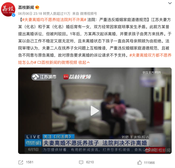 前几天,一条离婚的新闻很快冲上热搜第一。