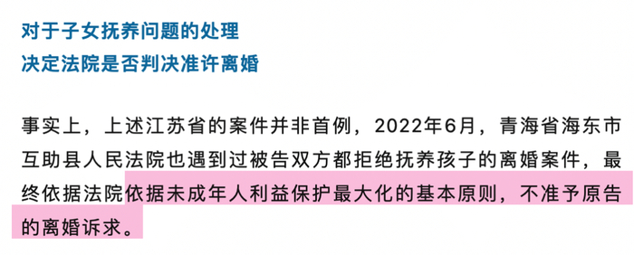 去年也发生过类似的案件,同样依据“未成年人利益保护最大化原则”,不准予离婚。