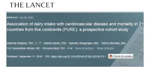 《柳叶刀》上发表的一项涉及了21个国家的13万人的研究结果显示,每天喝一斤全脂奶制品或有助心脏健康,降低心血管疾病和早逝风险。