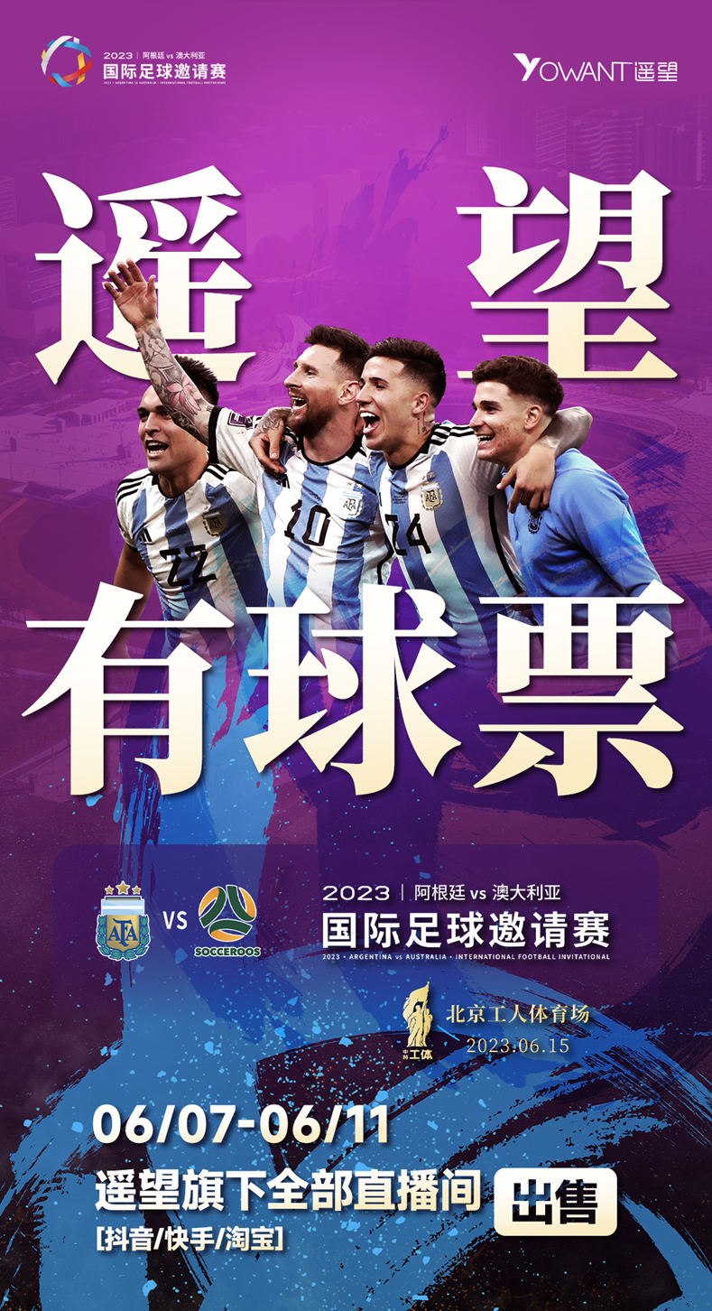 新榜讯 6月15日,阿根廷国家男子足球队和澳大利亚国家男子足球队将在北京工人体育场进行一场国际足球邀请赛,本场赛事门票在6月5日13:00开启首轮申购时售罄。