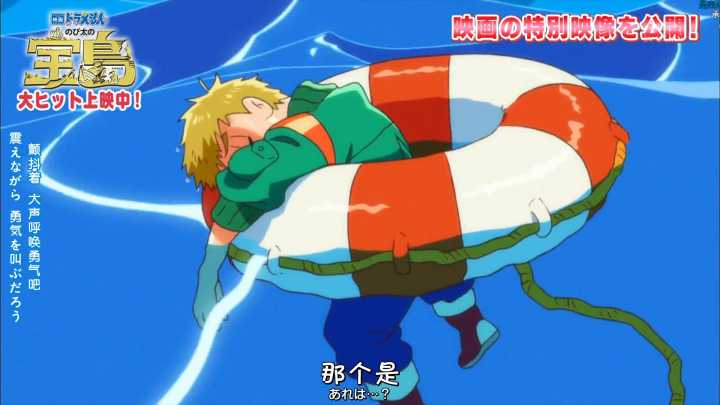 画面上,让镜头随着浪花推进、随着主角的视角推进、在方向上随时变换。《大雄的金银岛》在分镜的把握相较于近年的作品是非常优秀的。电影中不仅出现了小街道的细节场景,也有沿着河流俯瞰城市的壮阔。在岛上,大雄和小夫等人从树旁钻过去的时候,他们身上转瞬即逝地映出过透过叶片遮拦的一束束阳光。今年的《哆啦A梦》电影,在画面上的诚意由此可见一斑。