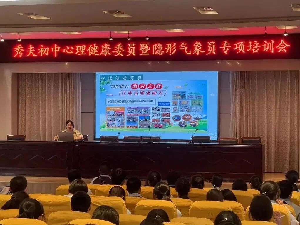 秀夫初中开设心理健康讲座、班会课等活动。由专职心理健康教师曹静雅和陈爱华为七、八年级全体学生开设主题为《青春相伴 交往有“道”》的心理健康讲座,同时以“525呵护心灵 快乐成长”为主题开展心理班会课,旨在让学生要认识自我,关爱自我,接纳自我,保持乐观自信。中考前夕,该校还开展九年级团体活动,帮助初三学生减轻考前压力,放松心情,促进身心健康。