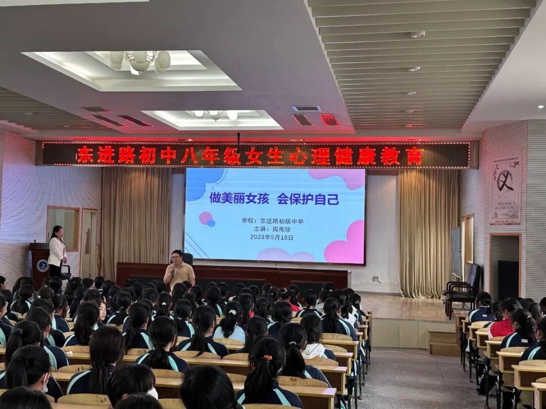 东进路初中开展的以“做美丽女孩,会保护自己”为主题教育活动。活动中,该校心理咨询老师周海珍针对初中阶段女生具体情况,用鲜活的案例和丰富的理论知识,对同学们进行系统教育,深入培养她们的观察能力、分析能力、应变处置能力,养成珍惜生命,关爱健康的生活态度。此次安全教育活动,让全校女生增强了自我保护的意识和能力,认识到预防就是最有力的武器。