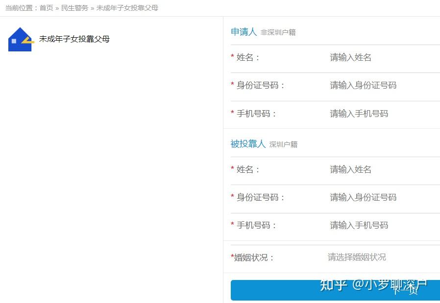办理流程与夫妻随迁入户/子女随迁入户相似,不过在选择的时候是选择投靠子女,根据系统提示及实际情况操作和填写信息,即可完成网上申请流程。