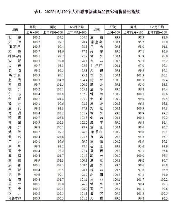 6月15日,国家统计局公布2023年5月份70个大中城市商品住宅销售价格变动情况。5月70个大中城市新建商品住宅销售价格环比整体涨幅回落、二手住宅环比下降。一线城市商品住宅销售价格同比涨幅回落,二三线城市同比总体降势趋缓。