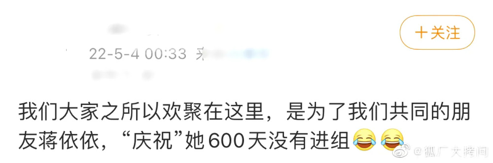 随后蒋依依的粉丝发文,“我们大家之所以欢聚在这里,是为了我们共同的朋友蒋依依,“庆祝”她600天没有进组。”