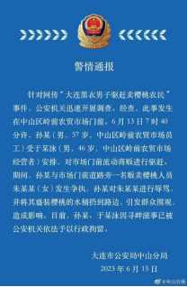 ·大连通报男子驱赶卖樱桃农民:为市场方人员,已被行拘。