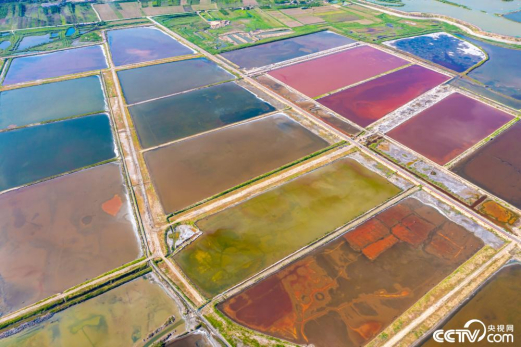2023年6月14日,山西运城,七彩盐湖呈现出色彩斑斓的景观,犹如大地调色板,美不胜收。