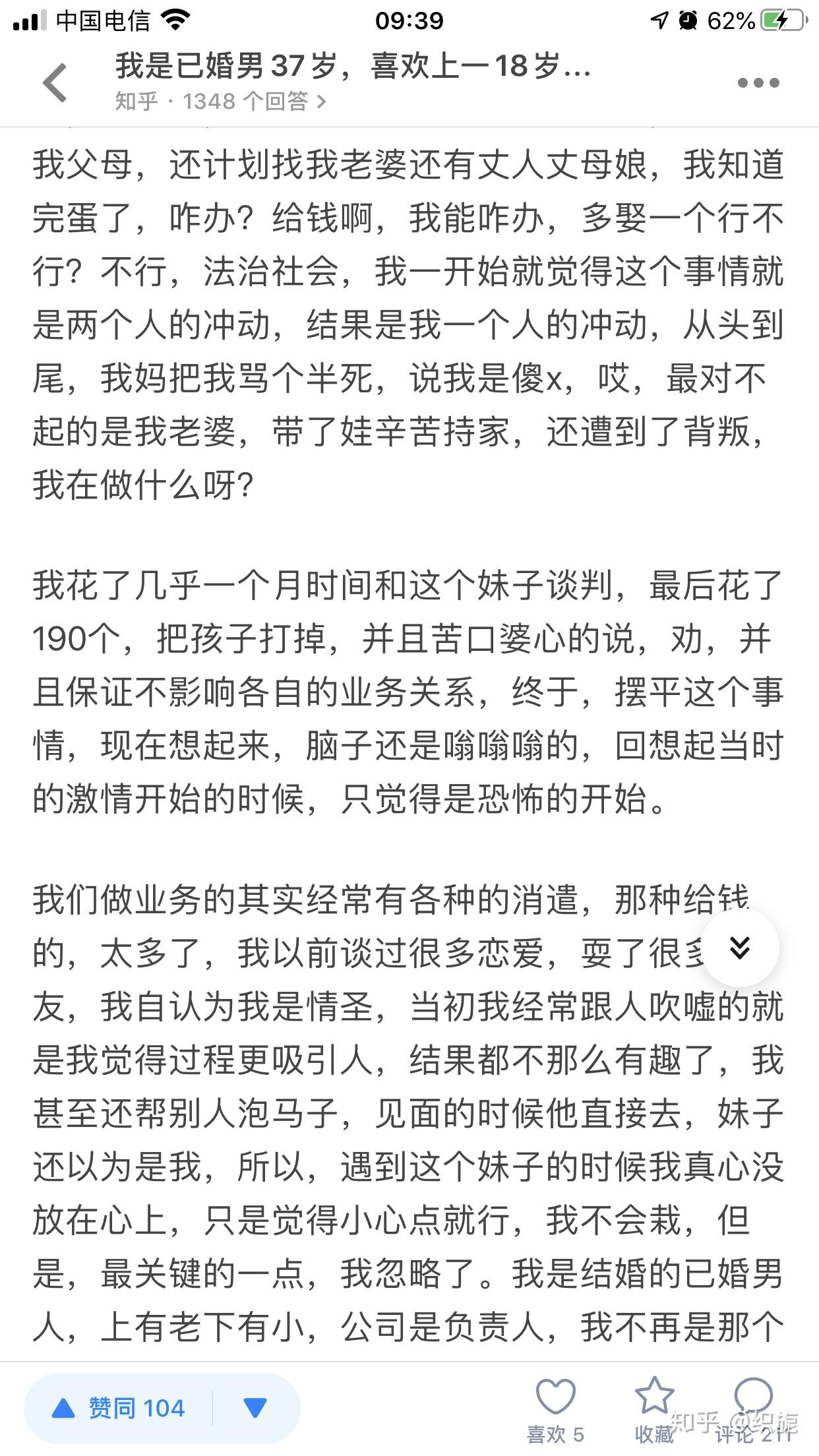 说一下,这个问题的提问者自己说了,是因为管不住下半身跟谈业务的18岁的xx形成关系随后怀孕,然后女婊要求37岁的提问者离婚,男方没同意,遂掏了190个的补偿让18岁的xx打了孩子。(因为被女 师举报,xx不得已打成xx)