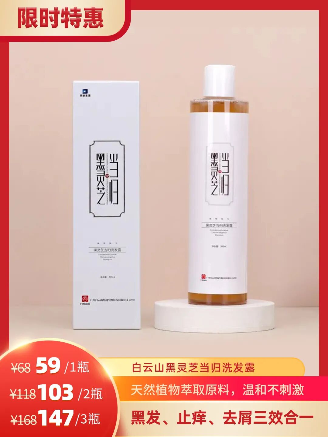 原价68元/瓶,特价59元/瓶!103元/2瓶!147元/3瓶!纯植物洗发水,不含任何刺激成分,老小都能用,大家可以放心大胆入。多瓶购买更划算,3瓶到手147,均价1瓶才49元!小编本人平时都是5瓶起囤的,全家人都夸买的好!