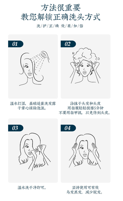 能够全方位给头发补充营养。头发吸收了充足的营养,自然就会变得乌黑莹亮,浓密十足。