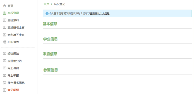 一种情况是以往没有参加过兵役登记,注册登录后提示该身份证号码已参加过往年度兵役登记,请联系本人常住户口所在乡镇、街道或高校武装部,获取登录帐号和密码,登录后查看兵役登记相关信息,学历等信息有变化的可进行修改。