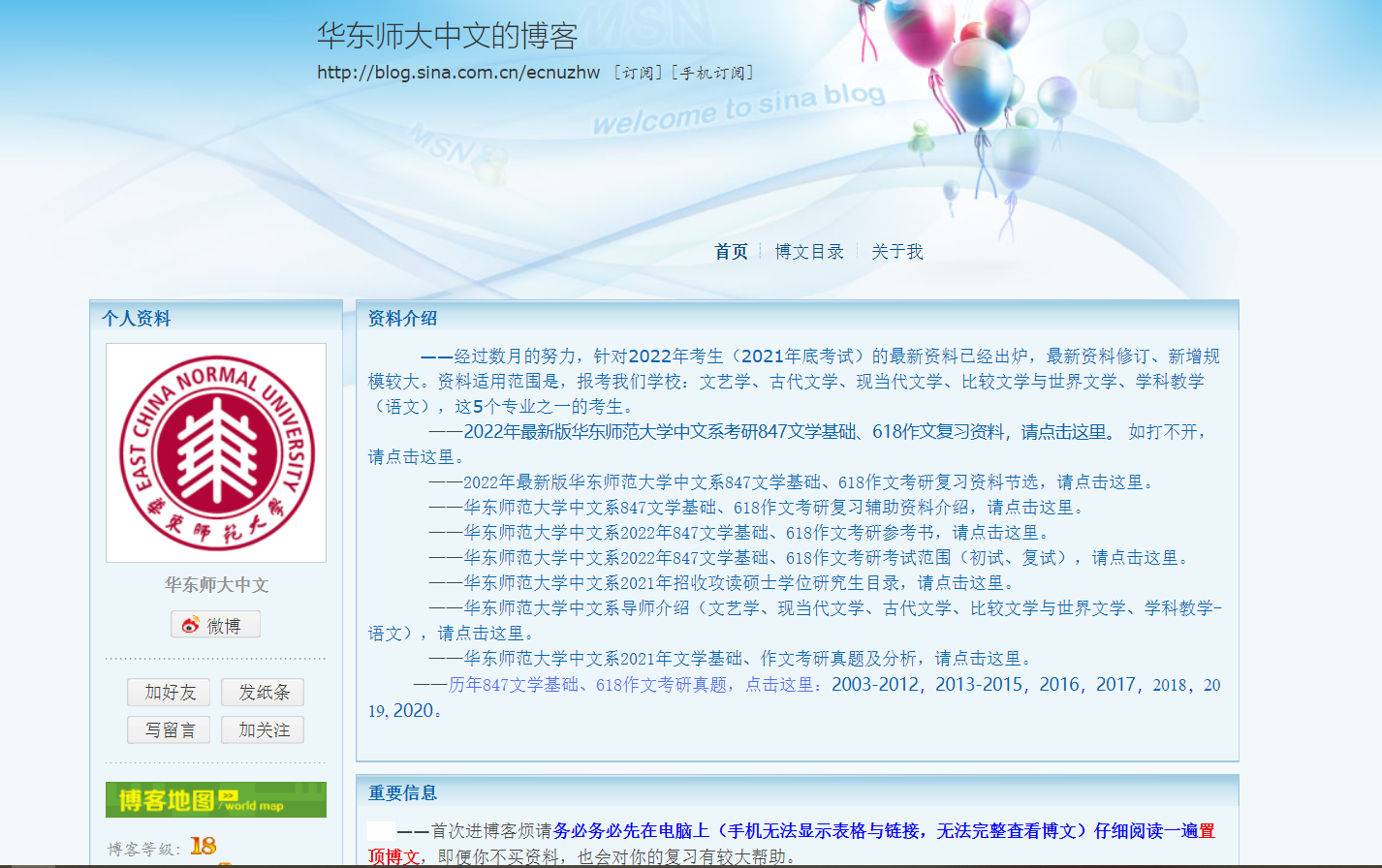 有想考华东师范大学中文系的朋友可以私聊我,这些资料我都有,不mianfei。