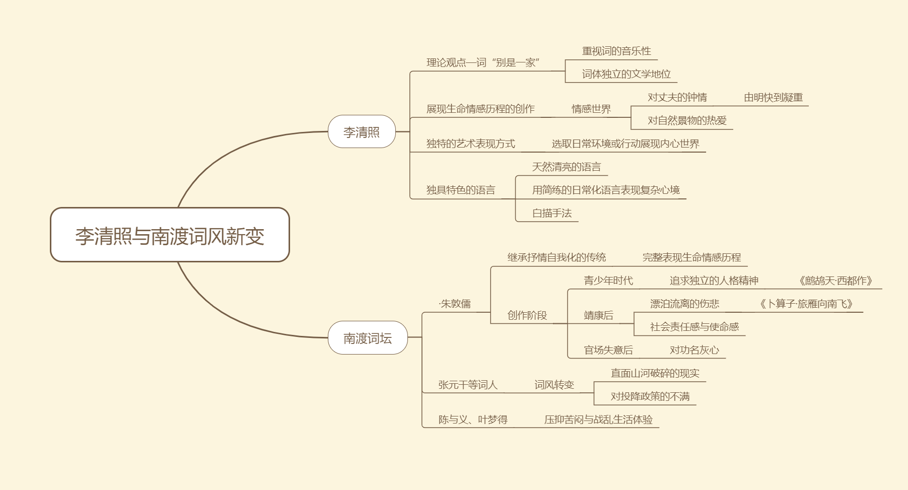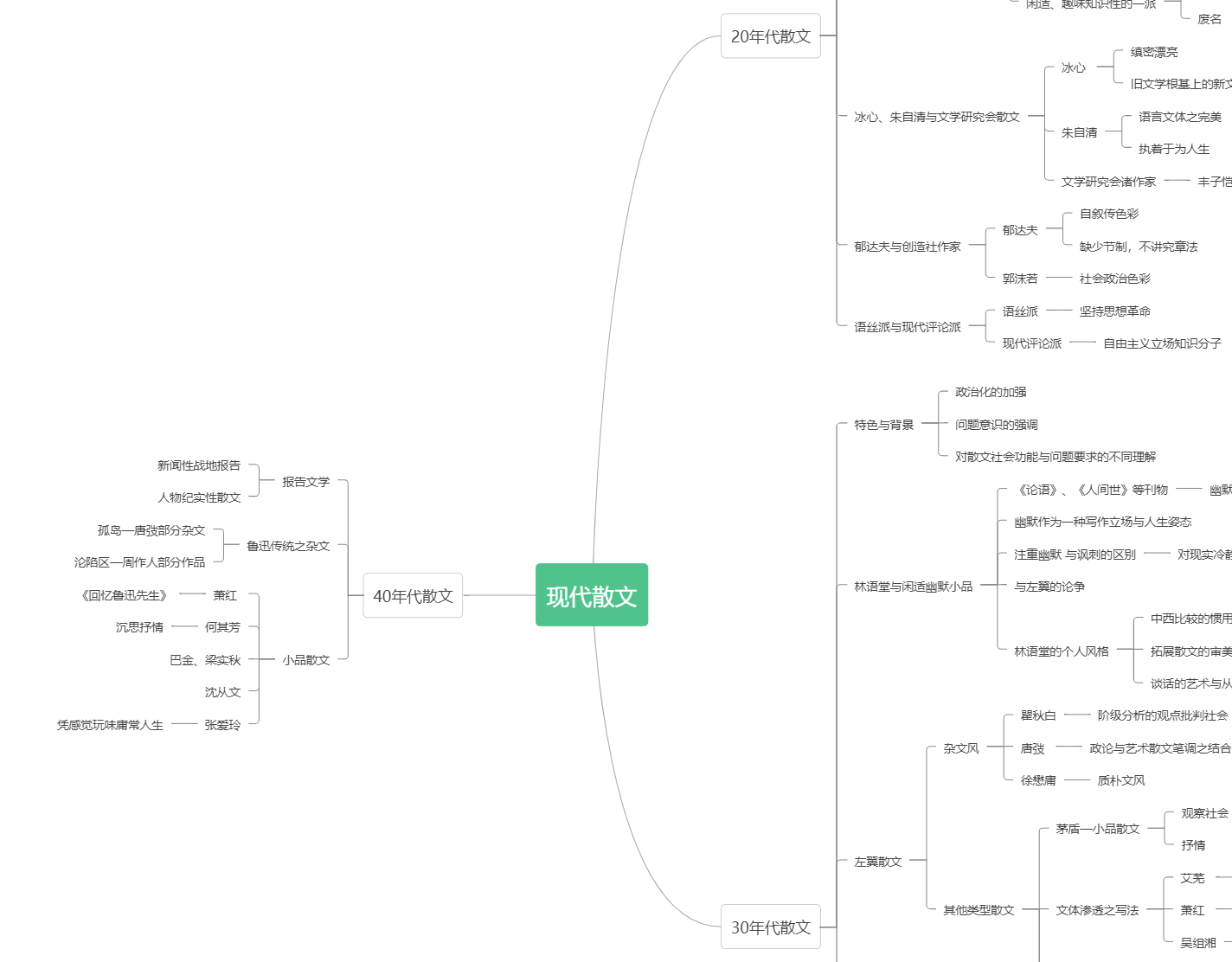 结合相关资料(按时间文体梳理好),首先梳理出某个时间段的重要问题,列出提纲。然后以不同的分类标准整理笔记,如现代文学中的诗歌。此时思维导图更是一个趁手的工具,思维导图整理完成的同时,整个知识结构也就明晰了起来。