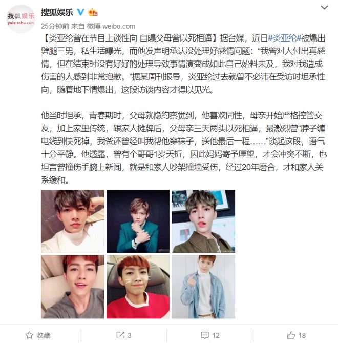 虽然在长文中,炎亚纶并未正面表示自己已经出柜,但他的文字中也间接证实了自己与男性曾有过恋情。