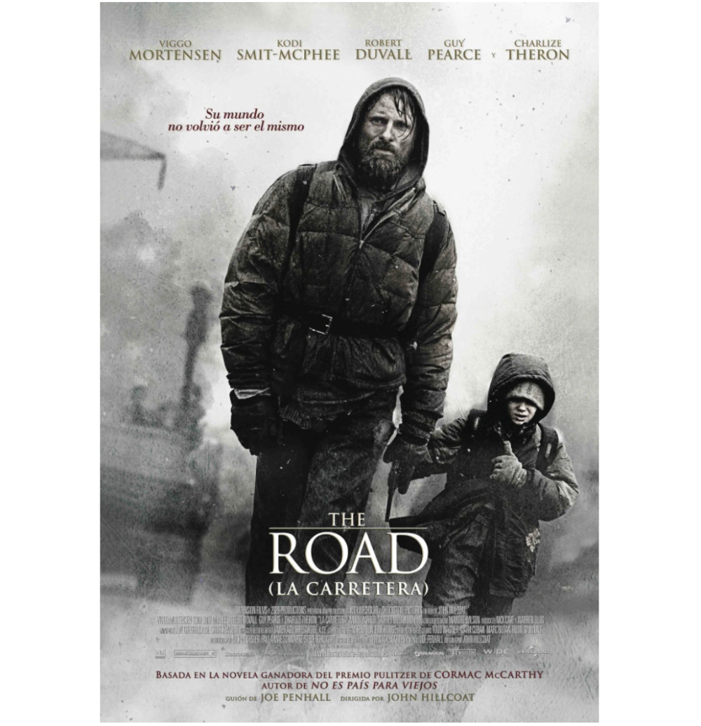 小说的主人公是一对无名父子,为了寻找温暖之地,他们手持一张残破的地图,推着一辆快要坏掉的超市购物车,沿着美国南部海岸一路南行,艰难求生。借助全知的第三人称视角和父亲的第三人称视角,小说讲述了二人在旅途中遭遇的各种有关生与死的经历以及他们相依为命、相互支持,共同捍卫生命尊严的经过。麦卡锡用海明威式的语言勾勒出末日降临、世界崩坏的场景。面对比比皆是的焦土残垣,人物的失语和麻木透露着绝望与无奈,在无尽的灰暗中忘却了从前生活的色彩。快节奏的短句、动词的大量使用以及场景的频繁切换表达出行走于生死边缘的惊心动魄。