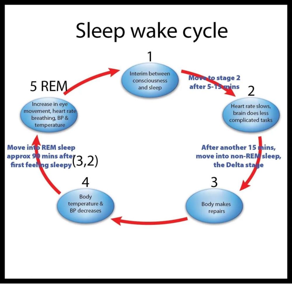 前面提到,一个非快速眼动睡眠和快速眼动睡眠构成一个睡眠周期,大概是90分钟左右。正常人入眠后一般先进入非快速眼动睡眠,然后进入快速眼动睡眠,紧接着又是非快速眼动睡眠,周而复始。